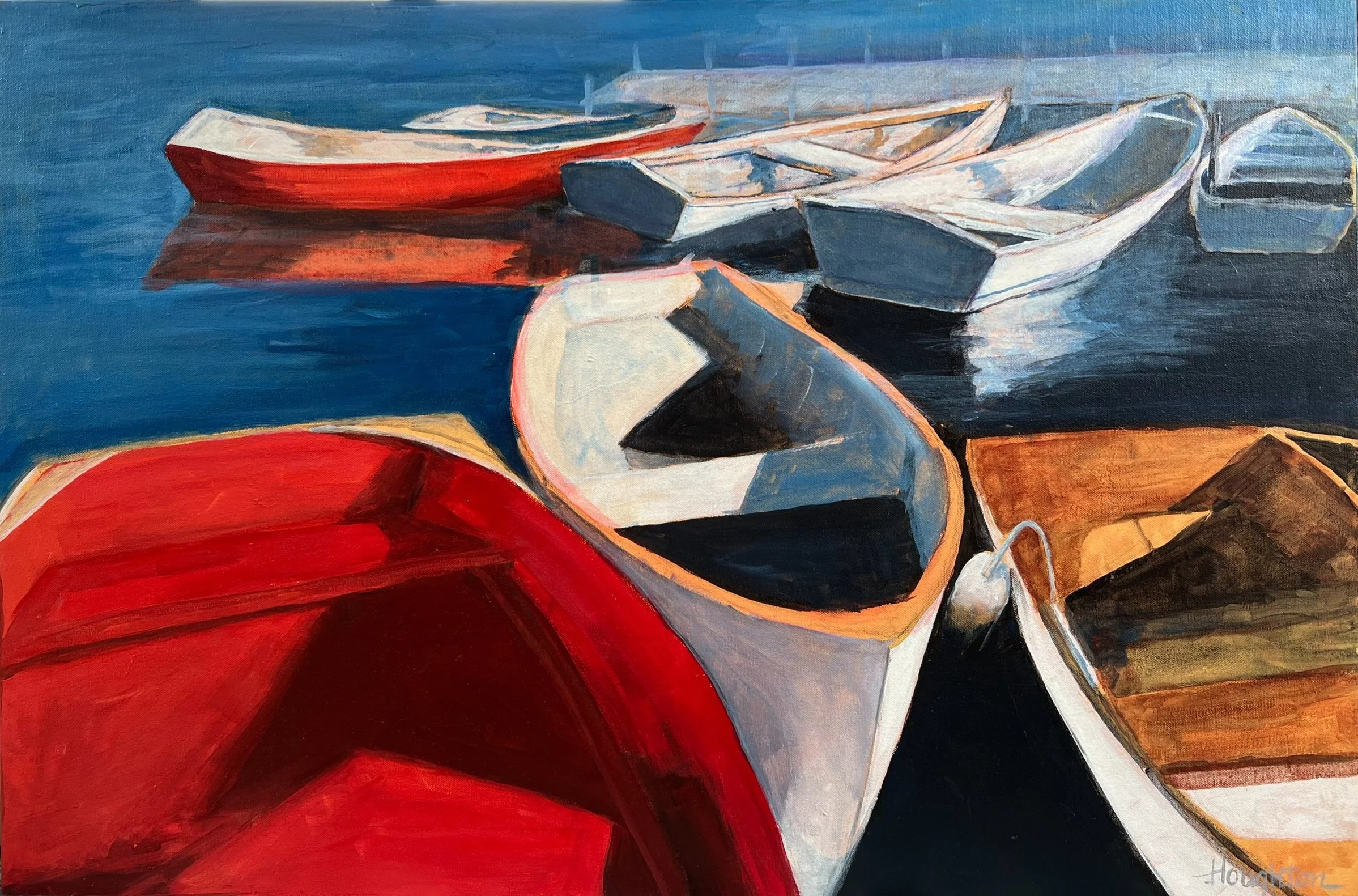 I am a prolific painter, and I want to paint every day. Once I have climbed the stairs to my studio, I lose all sense of time, completely immersed in solving problems. My goal is to create a balanced play of color and light. I tend to work very quickly, over long periods of time, not wanting to lose the original feeling of the painting. This technique has facilitated my excitement toward creating in different styles and subject matter. My strength lies in the under-painting, where I let the subject self-evolve from abstractions of color and movement. I am attracted to strong design, the texture of a painterly hand, and remain old school as a believer in 100% self -drawn art.